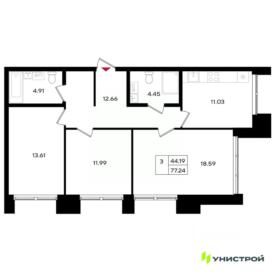 Общая площадь77,24 м²