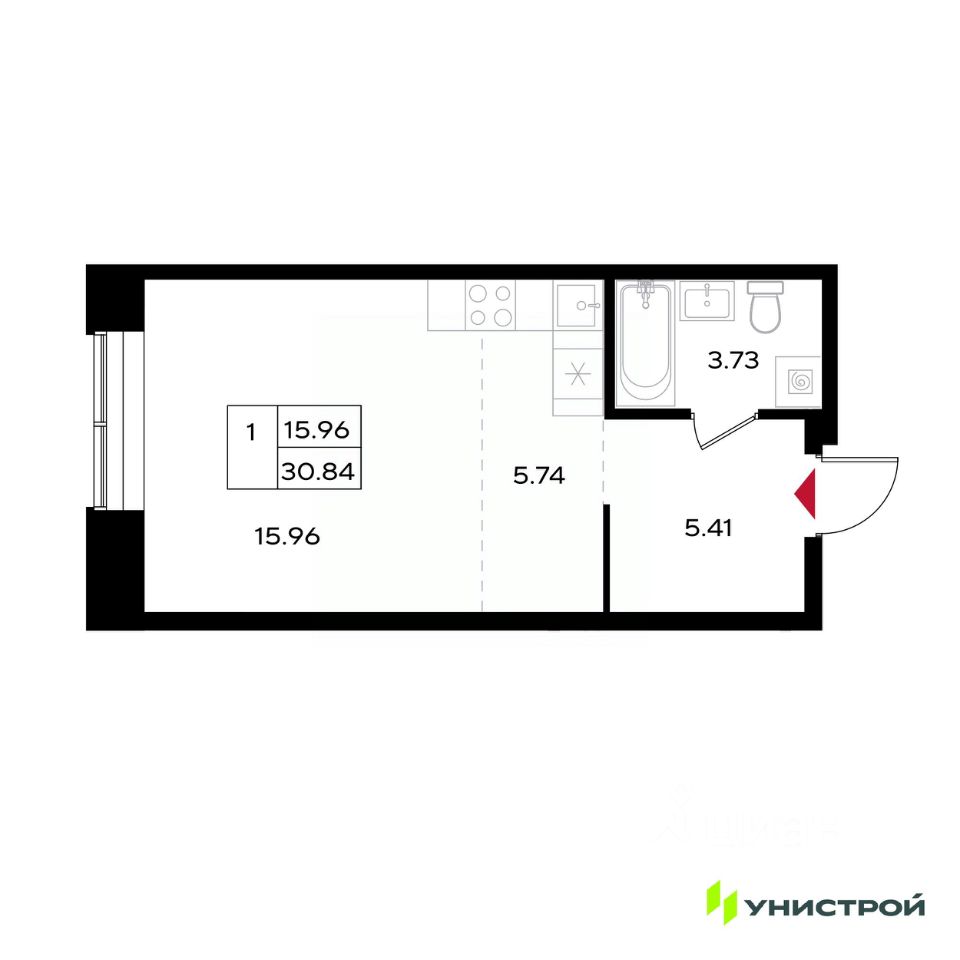 Общая площадь30,84 м²