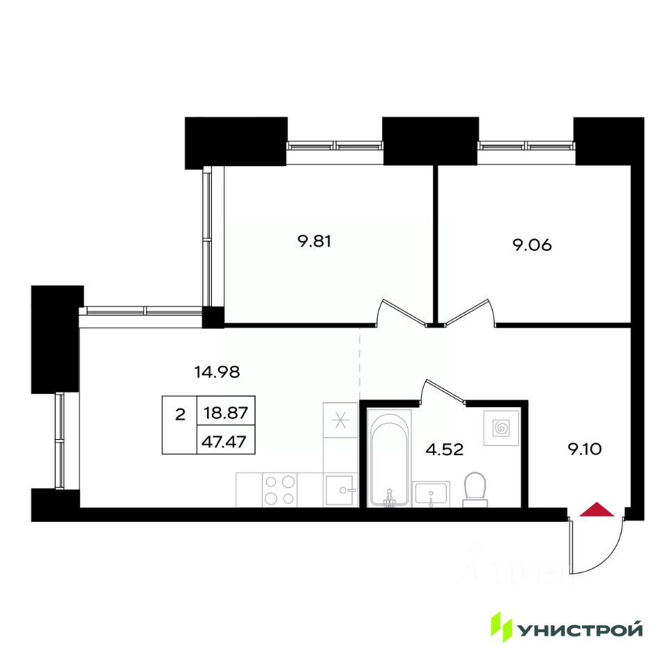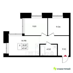 Общая площадь47,47 м²