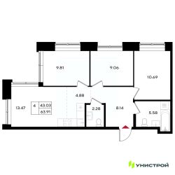Общая площадь63,91 м²