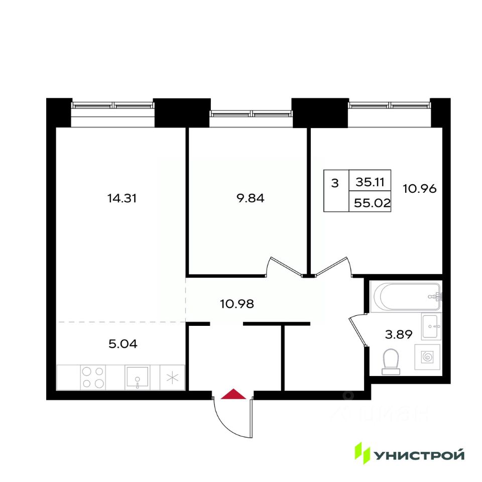 Общая площадь55,02 м²