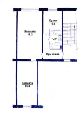 Общая площадь (без учета площади балкона): 43,8 кв.м, комнаты 17,2 и 13,8 кв.м, с/у совмещен, благодаря чему там удачно поместилась стиральная машина .