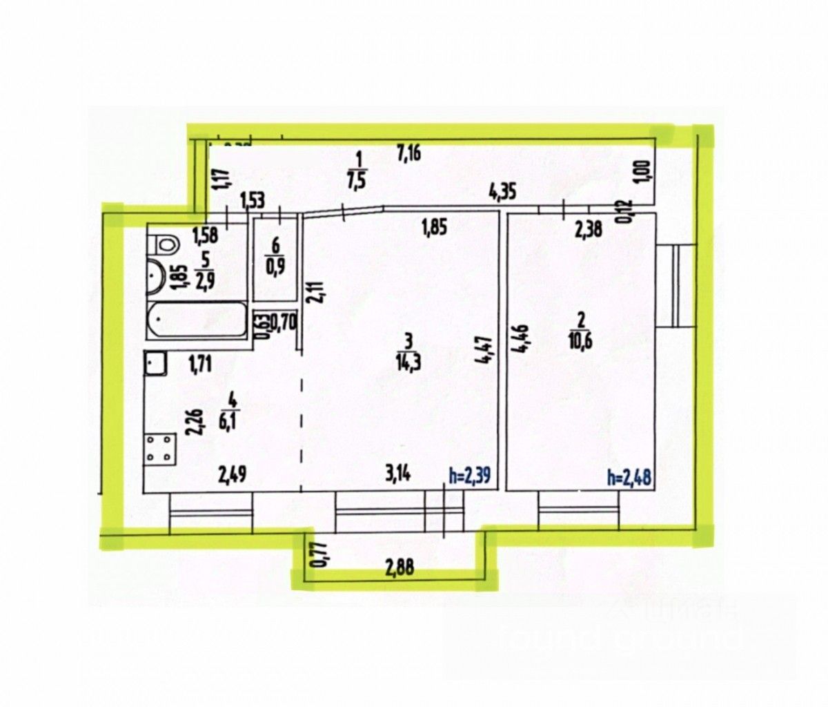 6,1 м²
