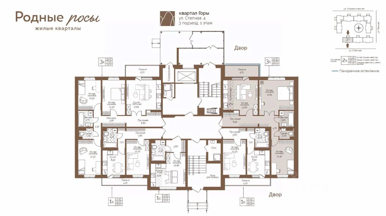 Продаётся 3-комнатная квартира в строящемся доме (Степная, 2), срок сдачи: IV-кв. 2027, общей площадью 67.2 кв.м., на 1 этаже. Новый жилой комплекс "Родные росы" от Специализированного застройщика "Финпроект" расположен в с. Фролы по ул. Академическая.