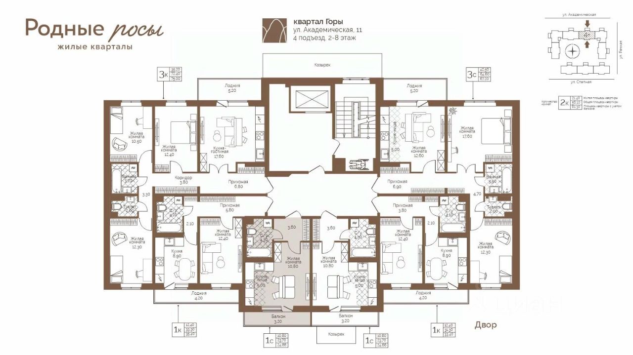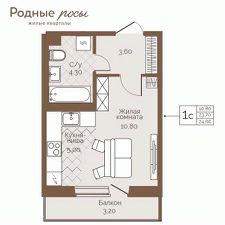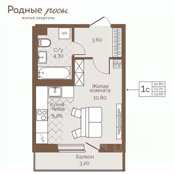 Продаётся 1-комнатная квартира в строящемся доме (Академическая, 9), срок сдачи: III-кв. 2027, общей площадью 24.66 кв.м., на 6 этаже. Новый жилой комплекс "Родные росы" от Специализированного застройщика "Финпроект" расположен в с. Фролы по ул. Академическая.