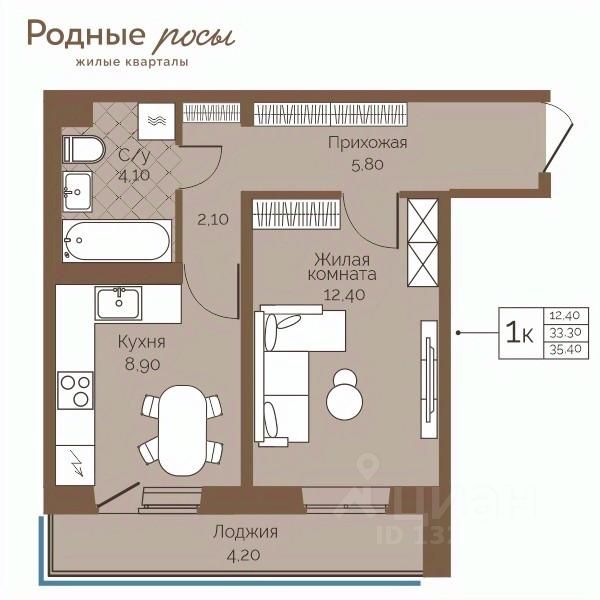 Продаётся 1-комнатная квартира в строящемся доме (Академическая, 9), срок сдачи: III-кв. 2027, общей площадью 35.4 кв.м., на 8 этаже. Новый жилой комплекс "Родные росы" от Специализированного застройщика "Финпроект" расположен в с. Фролы по ул. Академическая.