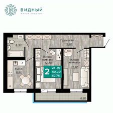Общая площадь52,75 м²