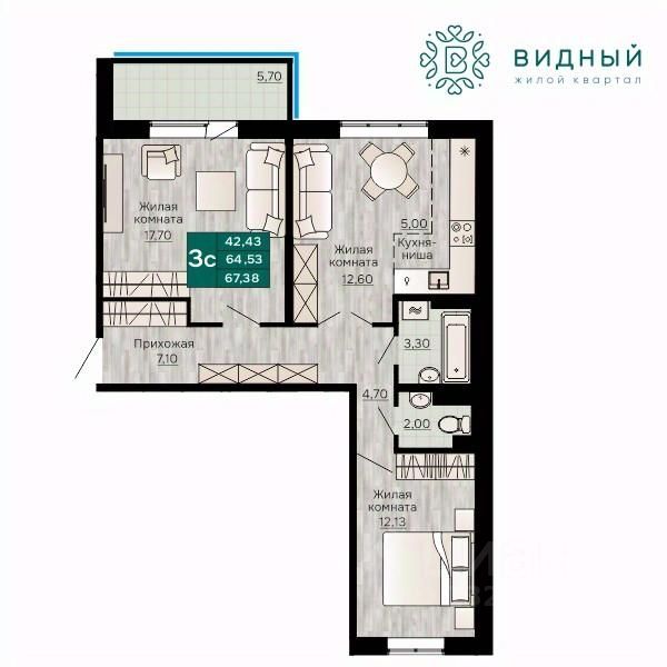 Продаётся 3-комнатная квартира в строящемся доме (корпус 2 (Кавказская, 13к2)), срок сдачи: II-кв. 2028, общей площадью 67.38 кв.м., на 8 этаже. Новый жилой комплекс "Жилой квартал "Видный" от Специализированного застройщика "СПК-Кавказская" расположен по адресу: г. Пермь, ул. Кавказская, 13.