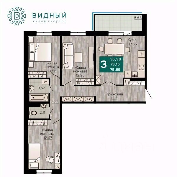 Продаётся 3-комнатная квартира в строящемся доме (корпус 2 (Кавказская, 13к2)), срок сдачи: II-кв. 2028, общей площадью 75.99 кв.м., на 3 этаже. Новый жилой комплекс "Жилой квартал "Видный" от Специализированного застройщика "СПК-Кавказская" расположен по адресу: г. Пермь, ул. Кавказская, 13.
