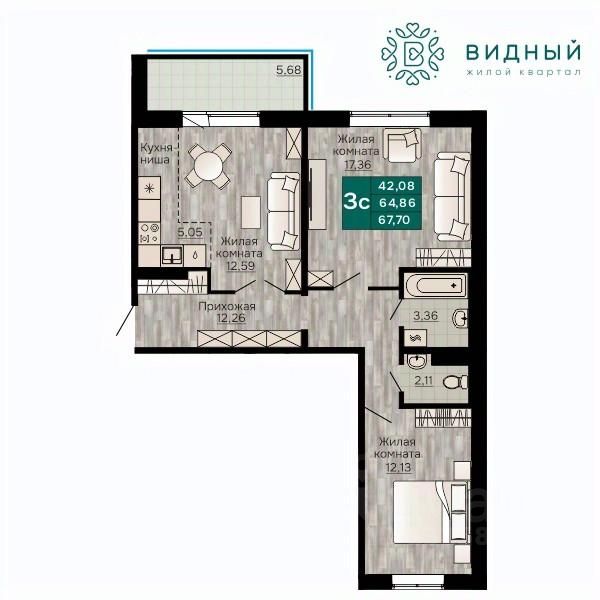 Продаётся 3-комнатная квартира в строящемся доме (корпус 2 (Кавказская, 13к2)), срок сдачи: II-кв. 2028, общей площадью 67.7 кв.м., на 6 этаже. Новый жилой комплекс "Жилой квартал "Видный" от Специализированного застройщика "СПК-Кавказская" расположен по адресу: г. Пермь, ул. Кавказская, 13.