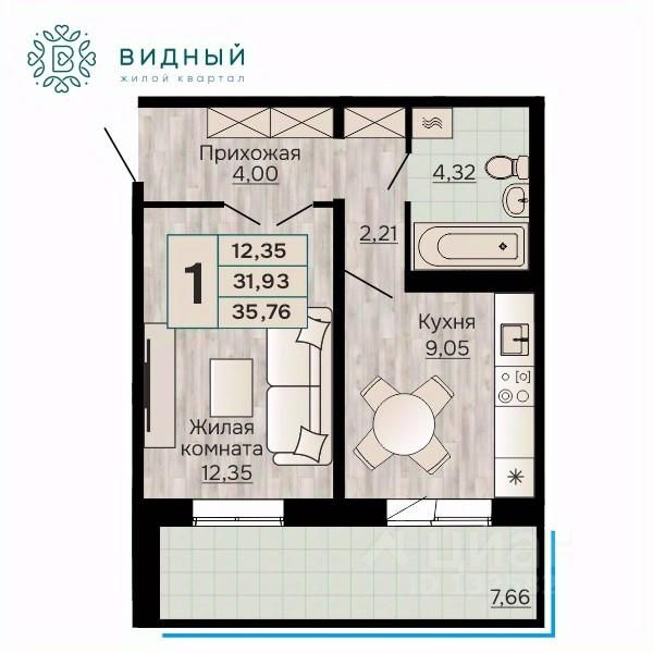 Продаётся 1-комнатная квартира в строящемся доме (корпус 2 (Кавказская, 13к2)), срок сдачи: II-кв. 2028, общей площадью 35.76 кв.м., на 7 этаже. Новый жилой комплекс "Жилой квартал "Видный" от Специализированного застройщика "СПК-Кавказская" расположен по адресу: г. Пермь, ул. Кавказская, 13.
