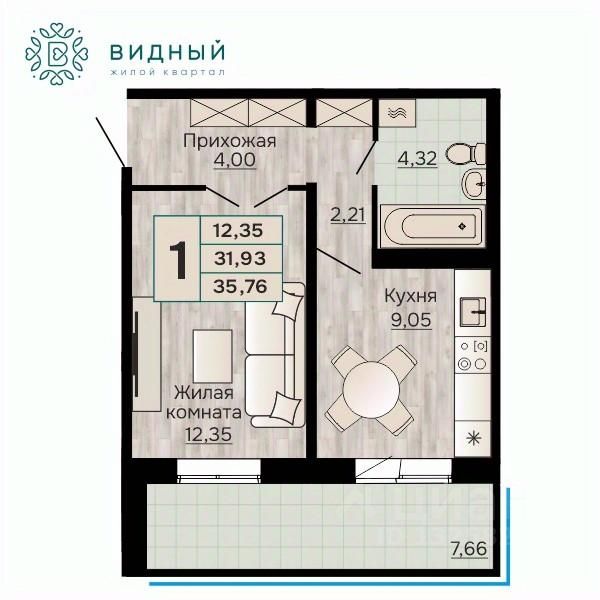 Продаётся 1-комнатная квартира в строящемся доме (корпус 2 (Кавказская, 13к2)), срок сдачи: II-кв. 2028, общей площадью 35.76 кв.м., на 8 этаже. Новый жилой комплекс "Жилой квартал "Видный" от Специализированного застройщика "СПК-Кавказская" расположен по адресу: г. Пермь, ул. Кавказская, 13.