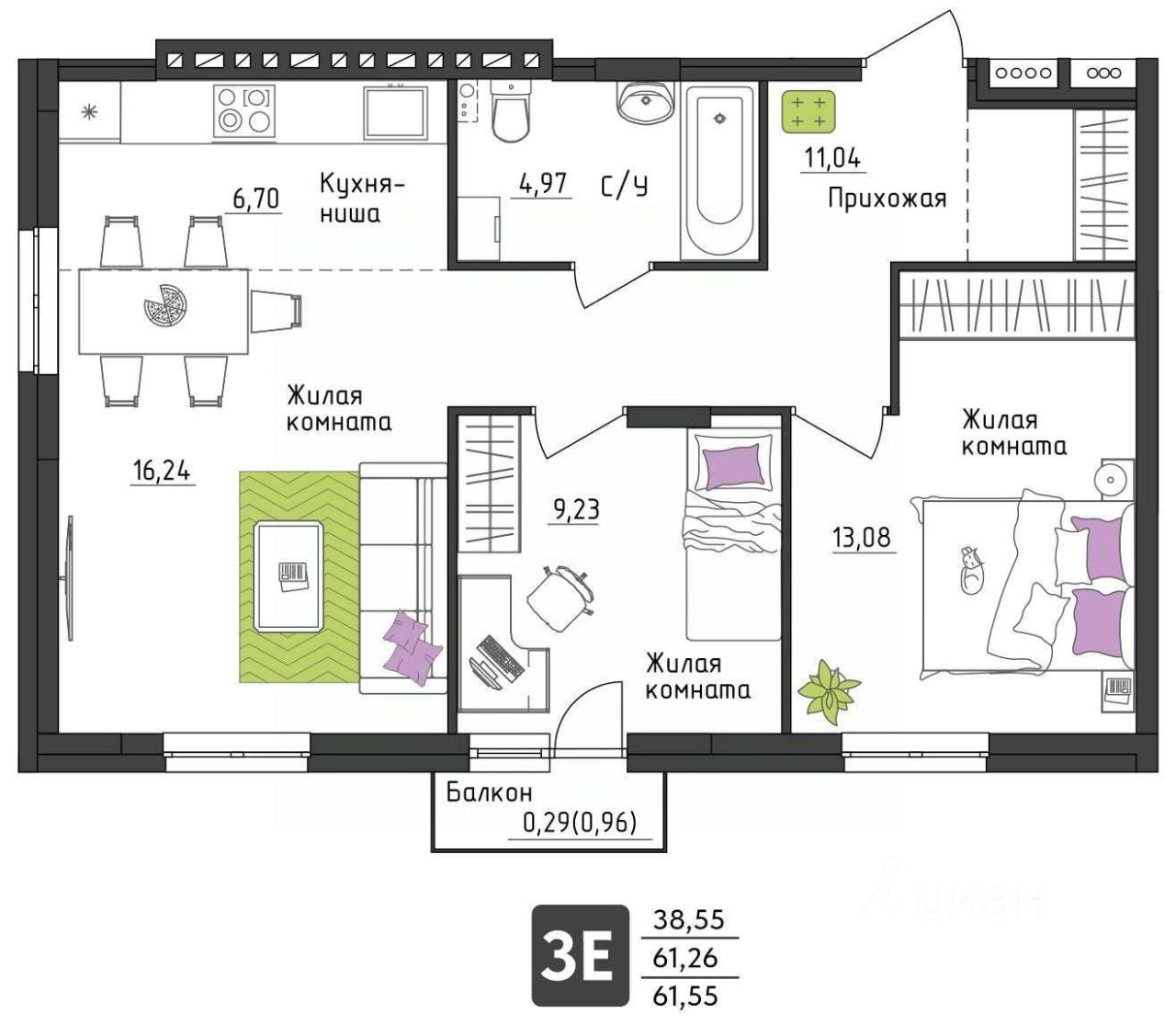 • Сантехника: ванна, унитаз, раковина, смесители. Полотенцесушитель.