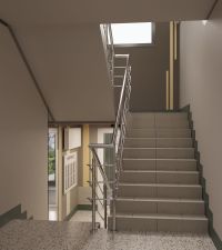 Стильные подъезды выполнены по индивидуальному дизайну. Предусмотрено место для хранения колясок, в 4 подъезде - колясочная. Подъезды оборудованы домофонами, расположенными в тёплых тамбурах. Витражное остекление входной группы позволяет увидеть то, что происходит во дворе.