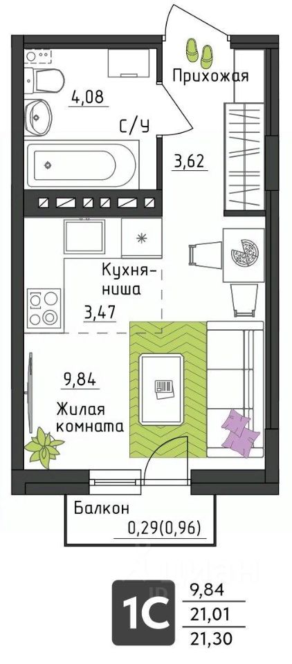 • Сантехника: ванна, унитаз, раковина, смесители. Полотенцесушитель.