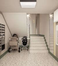 Стильные подъезды выполнены по индивидуальному дизайну. Предусмотрено место для хранения колясок, в 4 подъезде - колясочная. Подъезды оборудованы домофонами, расположенными в тёплых тамбурах. Витражное остекление входной группы позволяет увидеть то, что происходит во дворе.