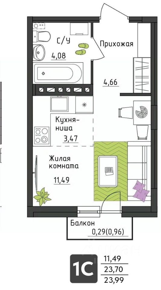 • Сантехника: ванна, унитаз, раковина, смесители. Полотенцесушитель.