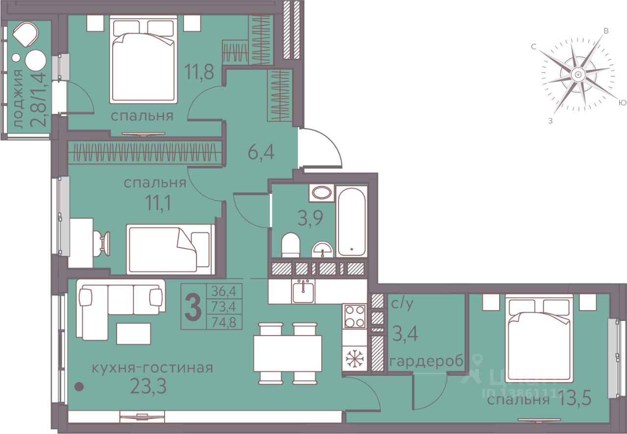 Продаётся 3-комнатная квартира в строящемся доме (Серебристая, 5), срок сдачи: I-кв. 2026, общей площадью 74.8 кв.м., на 15 этаже. Теплые кварталы "Погода" — это новый грандиозный проект от создателя Спортивного микрорайона "Ива", федерального застройщика "Девелопмент-Юг" .
