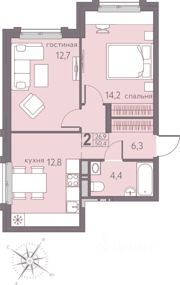 Продаётся 2-комнатная квартира в строящемся доме (Серебристая, 5), срок сдачи: I-кв. 2026, общей площадью 50.4 кв.м., на 12 этаже. Теплые кварталы "Погода" — это новый грандиозный проект от создателя Спортивного микрорайона "Ива", федерального застройщика "Девелопмент-Юг" .