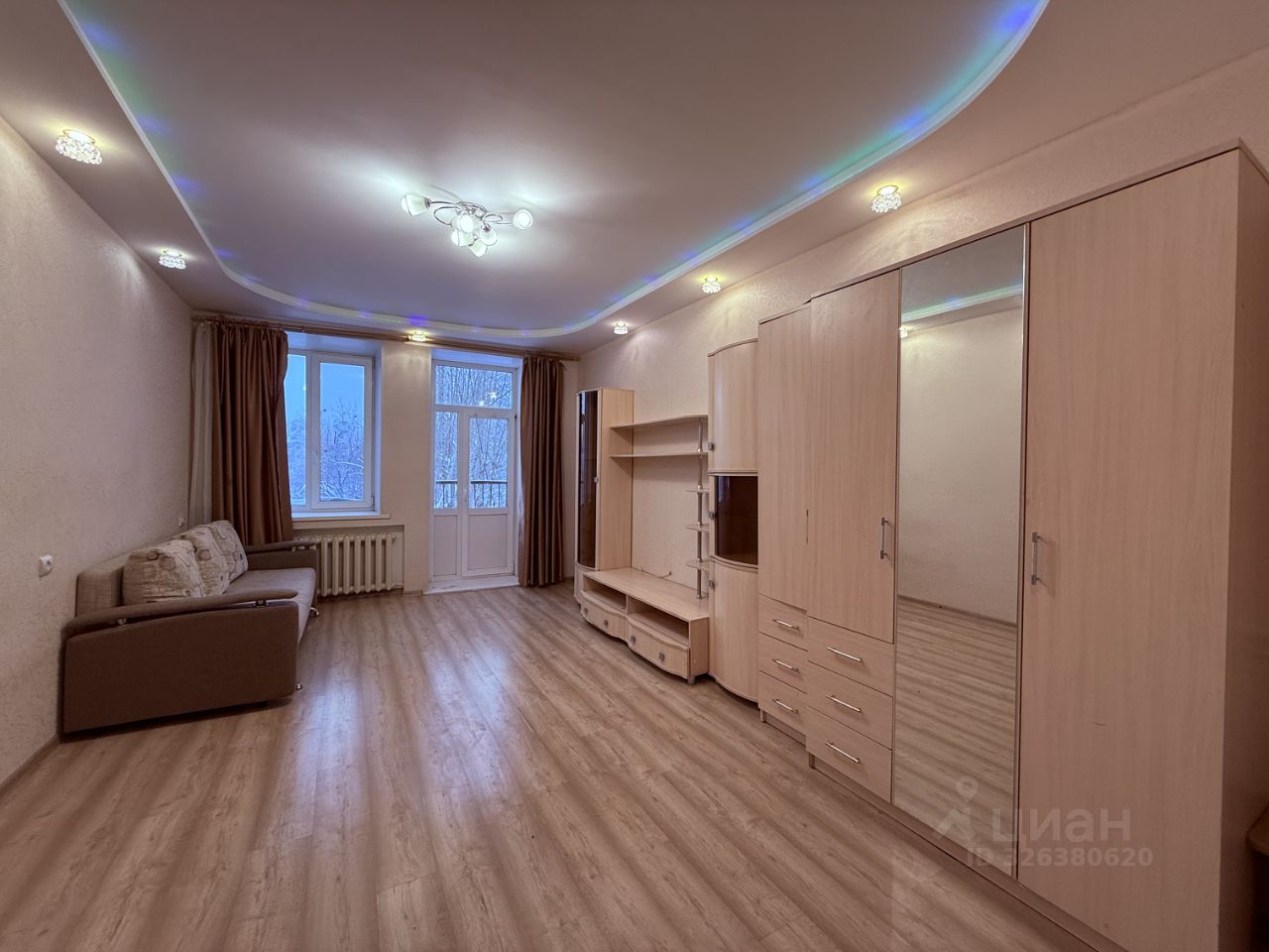 Планировка квартиры как в домах комфорт-класса: большие изолированные комнаты, каждая с балконом. В спальной полноценный остекленный балкон, в гостевой французский балкончик.