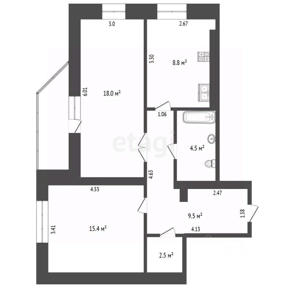 Остаётся кухонный гарнитур и газовая варочная поверхность — можно заезжать и сразу начинать жить.