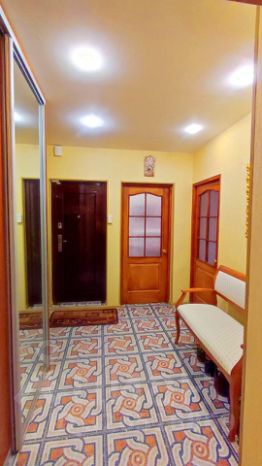 Пол: в коридоре и на кухне кафель, в комнатах ламинат.