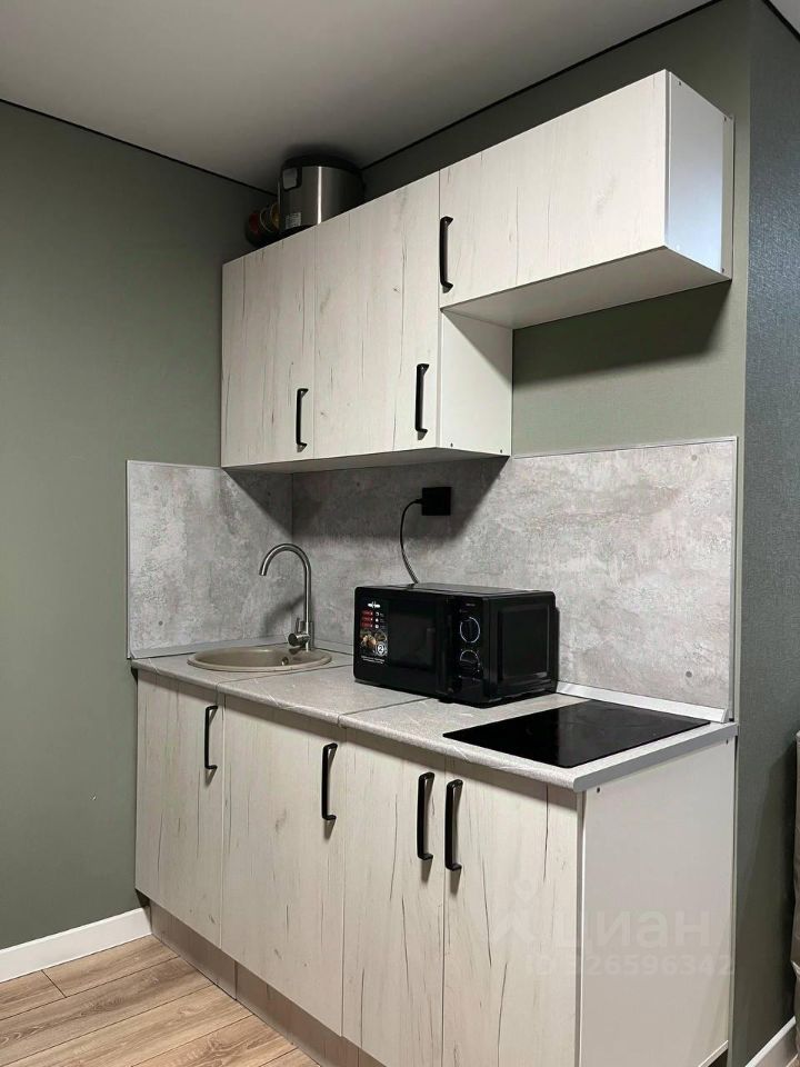 Продается уютная квартира-студия с евроремонтом, расположенная на последнем этаже кирпичного дома. Общая площадь квартиры составляет 17,4 кв. м, жилая площадь — 12 кв. м, а площадь кухни — 2 кв. м. Окна выходят на улицу, что обеспечивает хорошее естественное освещение.