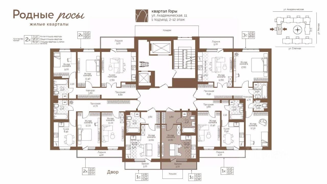 Продаётся 1-комнатная квартира в строящемся доме (Академическая, 9), срок сдачи: III-кв. 2027, общей площадью 24.66 кв.м., на 12 этаже. Новый жилой комплекс "Родные росы" от Специализированного застройщика "Финпроект" расположен в с. Фролы по ул. Академическая.