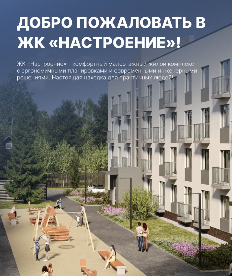 ЖК Настроение это три комфортных 4-этажных дома с эргономичными планировками и современными инженерными решениями.
