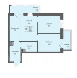 -Кухня-гостиная 19м2, две комнаты по 11м2