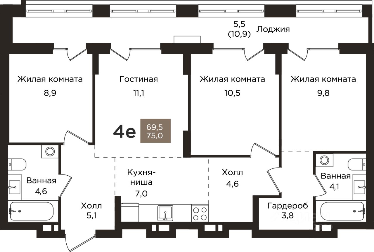 Общая площадь75 м²