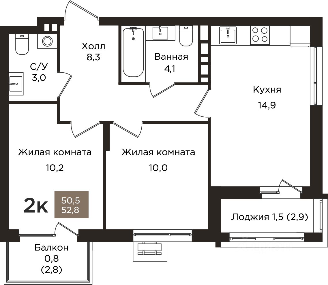 Общая площадь52,8 м²