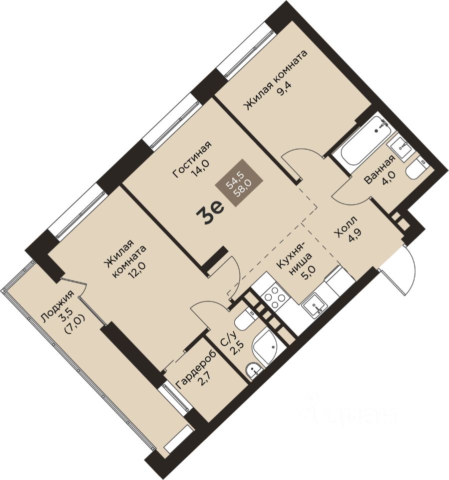 Общая площадь58 м²