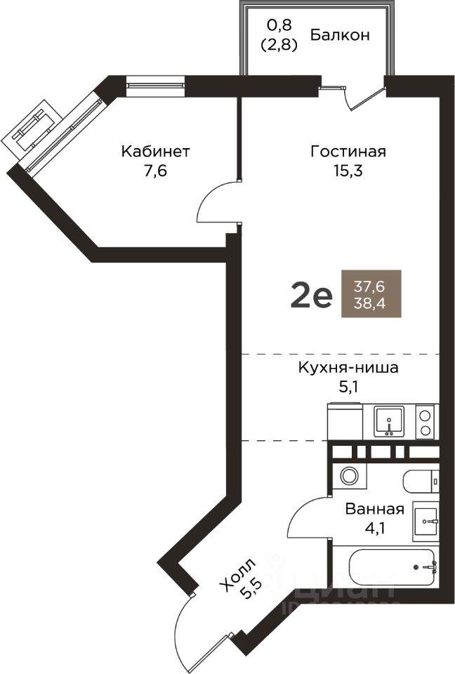 Общая площадь38,4 м²