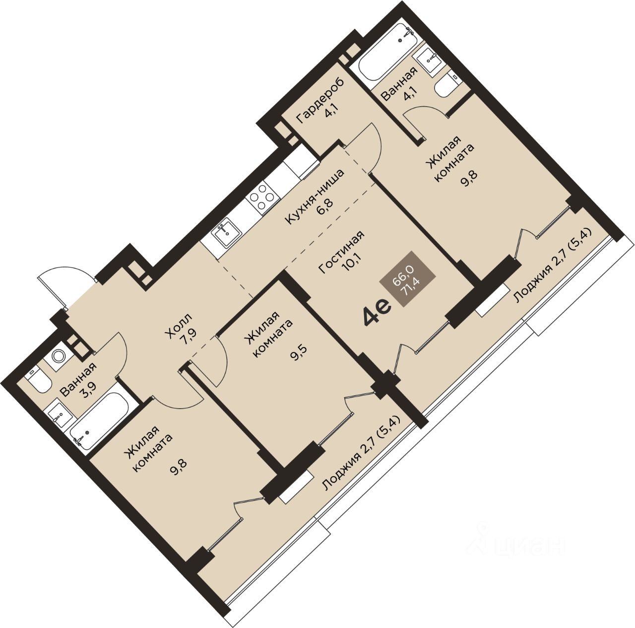 71,4 м²