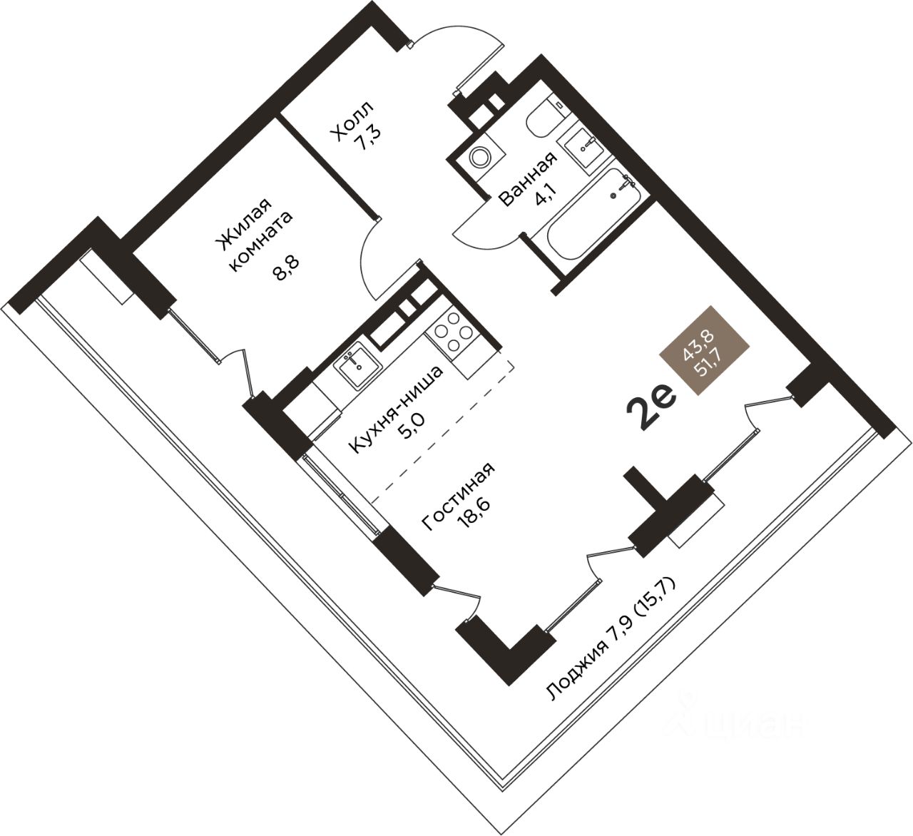 Общая площадь51,7 м²