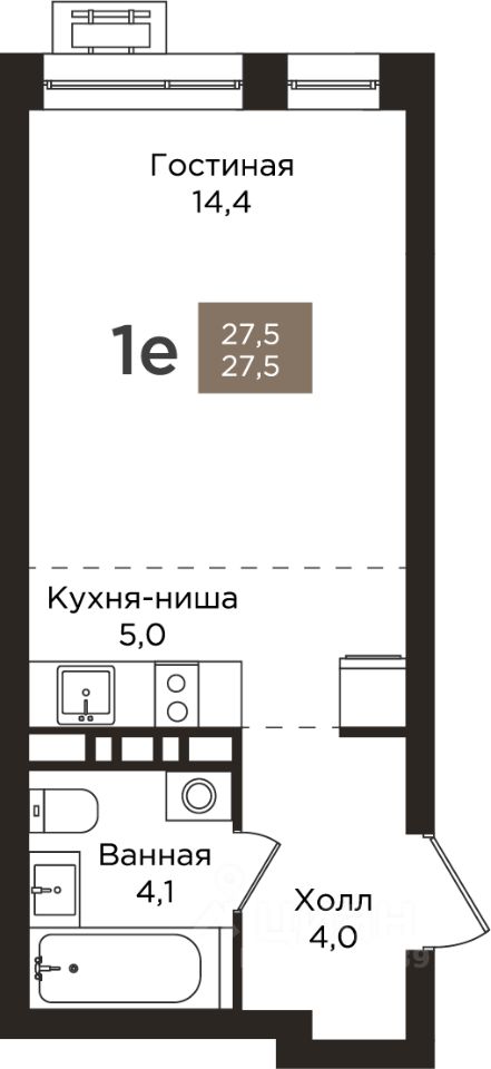 Общая площадь27,5 м²