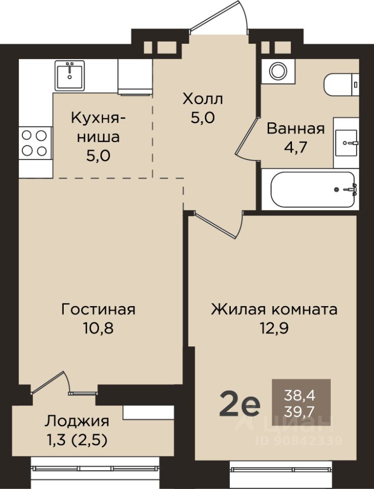 Общая площадь39,7 м²