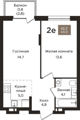 Общая площадь43 м²
