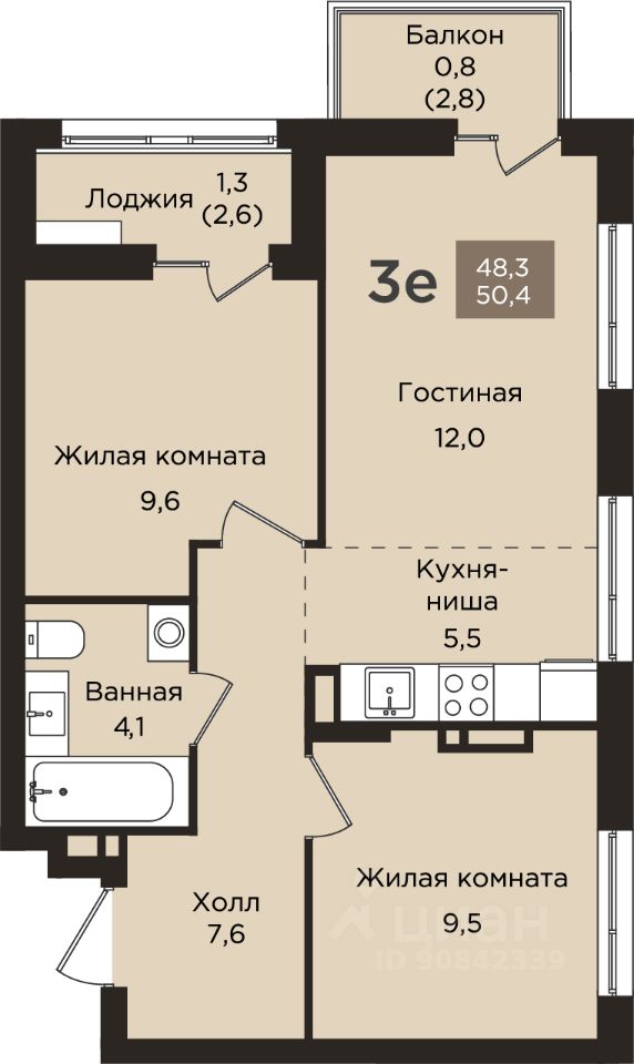 Общая площадь50,4 м²