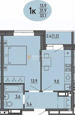 Продуманная планировка (33,1 м²). Просторная кухня (9 м²). В прихожей (5,4 м²) уже предусмотрена ниша под гардеробную — забудьте о громоздких шкафах в комнате!Застеклённый балкон для утреннего кофе.