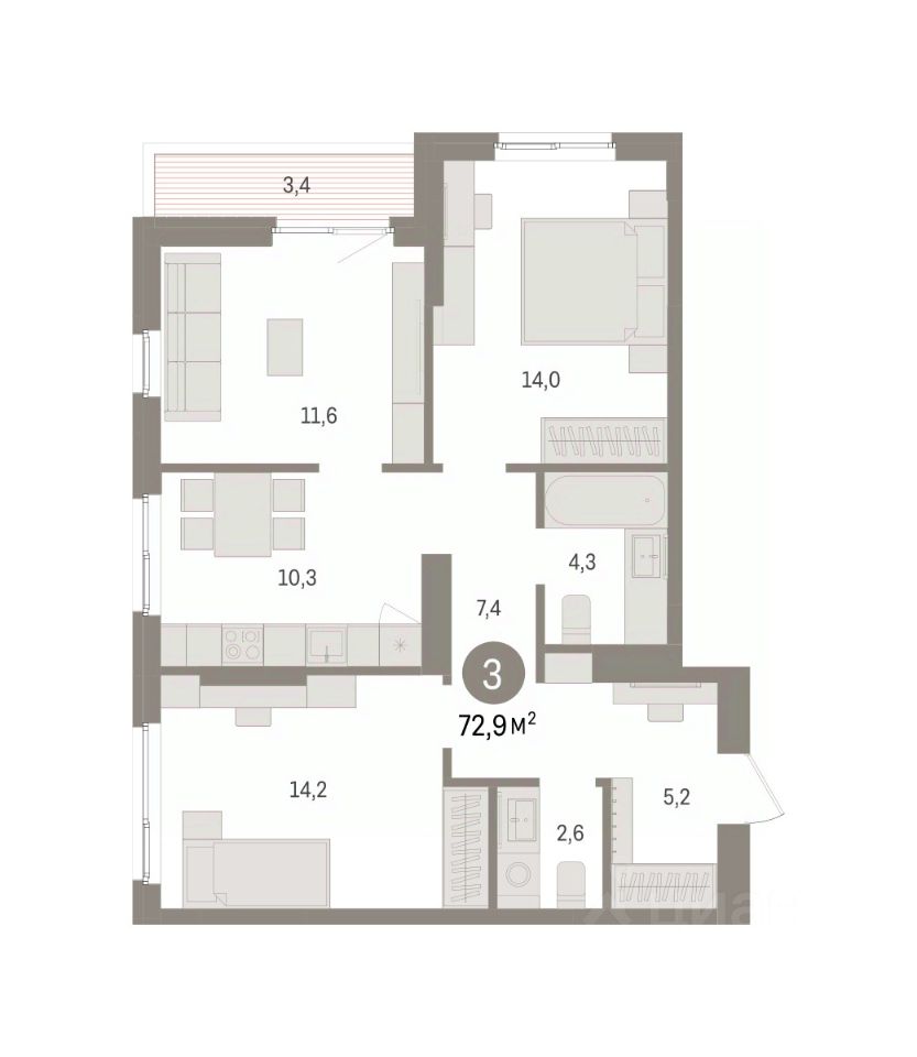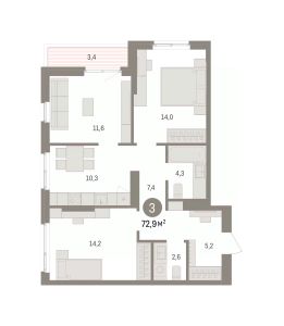 Трехкомнатная квартира с предчистовой отделкой в ЖК "Квартал "Юность"" на 5 этаже. Общая площадь: 72.94 кв.м., жилая: 39.8 кв.м., площадь просторной кухни-гостиной: 10.3 кв.м. Угловая квартира, идеально подойдет любителям тишины и панорамных видов. В квартире одна лоджия, один совмещенный и один раздельный санузел. Высота потолков 2.7 м.