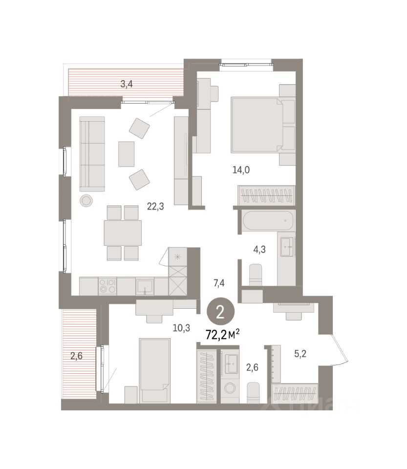 Продается 2-комн. квартира от застройщика с предчистовой отделкой в ЖК "Квартал "Юность"" на 4 этаже. Общая площадь: 72.16 кв.м., жилая: 24.3 кв.м., площадь просторной кухни-гостиной: 22.3 кв.м. Квартира угловая, очень светлая, естественная вентиляция при открытии окон. В квартире две лоджии, один совмещенный и один раздельный санузел. Высота потолков 2.7 м.