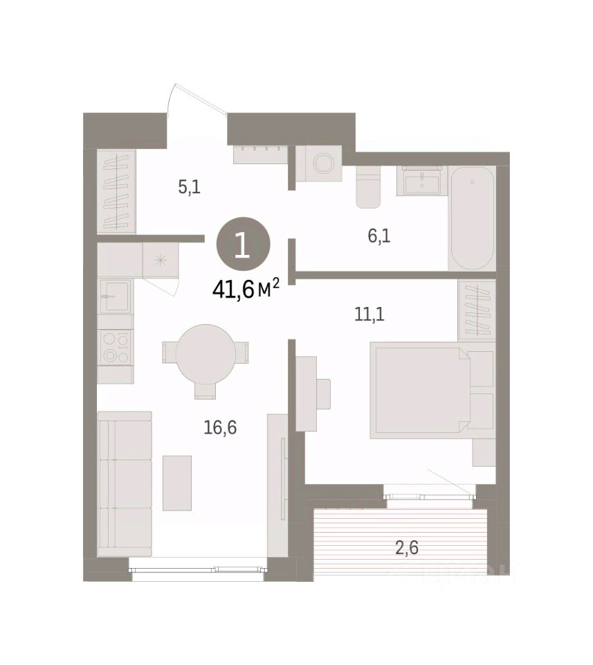 Однокомнатная квартира от застройщика с предчистовой отделкой в ЖК "Квартал "Юность"" на 13 этаже. Общая площадь: 41.56 кв.м., жилая: 11.1 кв.м., площадь просторной кухни-гостиной: 16.6 кв.м. Все окна выходят на одну сторону. В квартире одна лоджия, один совмещенный санузел. Высота потолков 2.7 м.