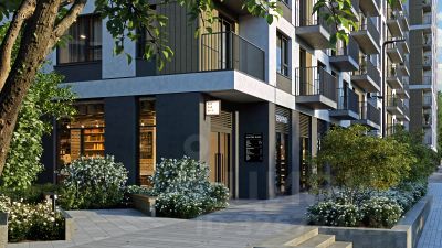 Отделка фасада выполнена в светлой, природной гамме: белый, серо-коричневый и теплый бежевый цвета и выразительные вставки придают дому современный облик. Балконы и террасы на верхних этажах выступают связующими звеньями, они создают плавные переходы между секциями и создают дополнительную визуальную динамику.