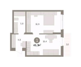 Продается однокомнатная квартира с предчистовой отделкой в ЖК "Квартал "Юность"" на 9 этаже. Общая площадь: 46.94 кв.м. Высота потолков 2.7 м.