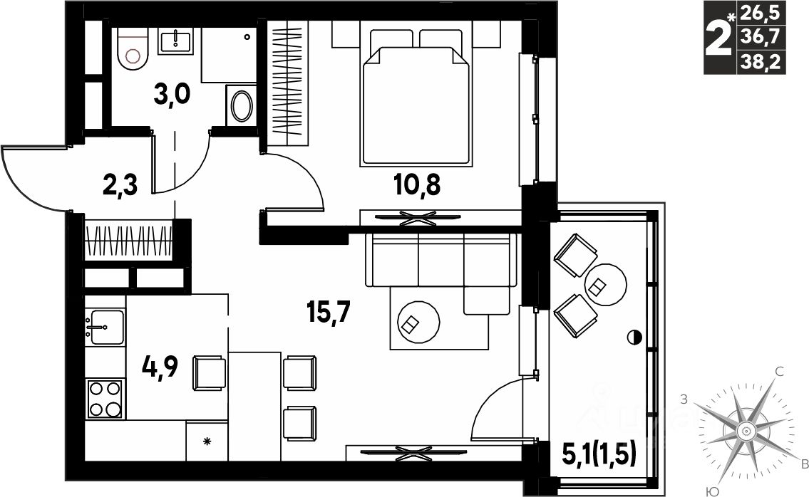 38,2 м²