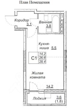 28,4 м²