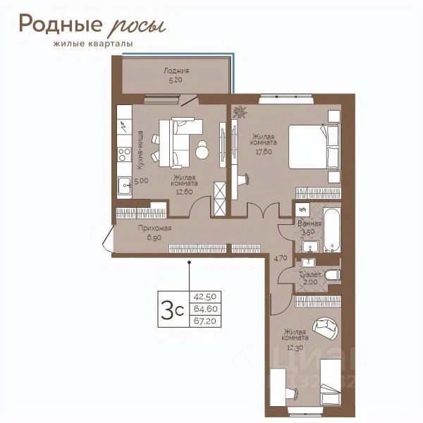 Общая площадь67,2 м²