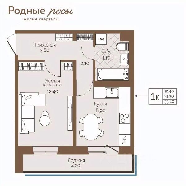 Общая площадь33,4 м²
